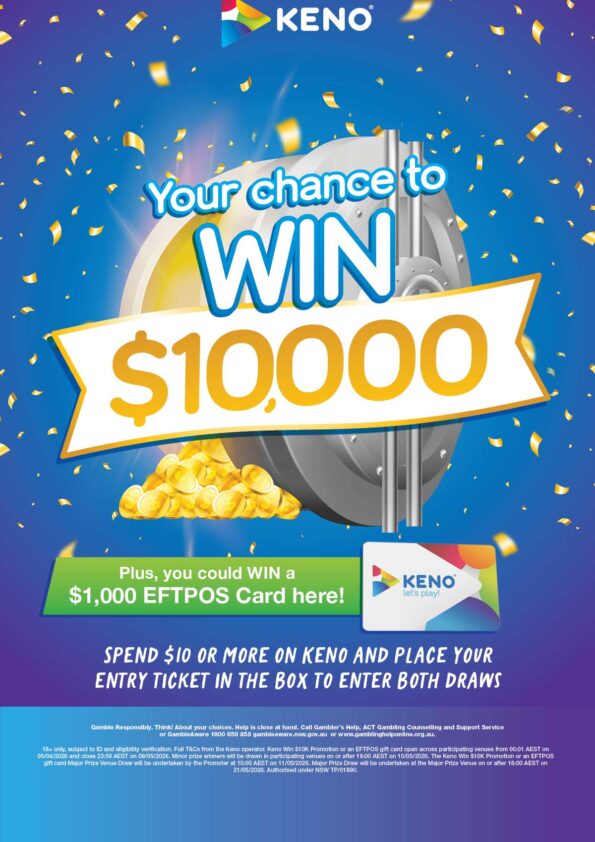 Spend $10 or more on Keno and you could go into the draw to win an incredible: